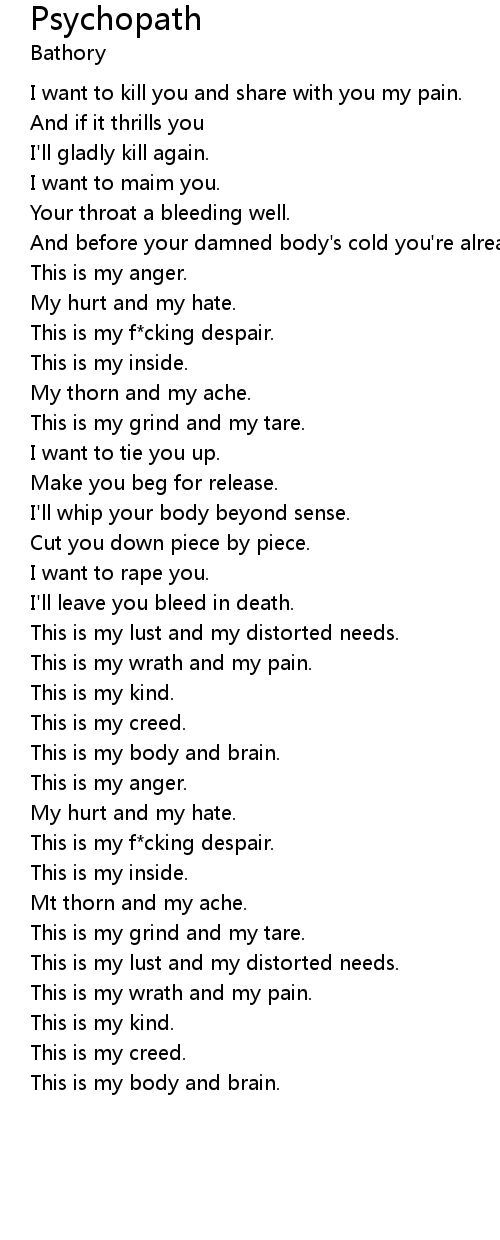 | I want to kill you and share with you my pain. | |