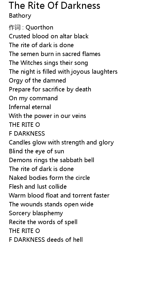 | Song | The Rite Of Darkness |