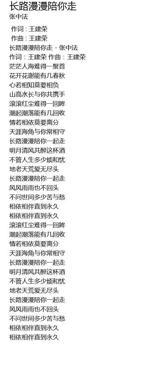 | [00:00.690] | 长路漫漫陪你走 - 张中法 |