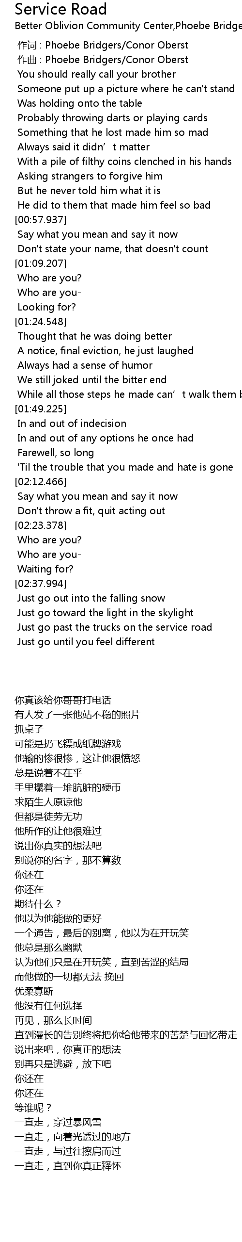 | [00:01.000] | zuo qu : Phoebe Bridgers Conor Oberst |