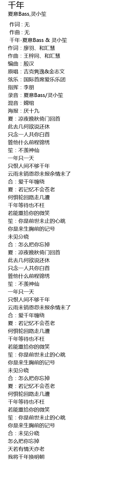 | [00:00.66] | 千年-夏意Bass & 灵小笙 |