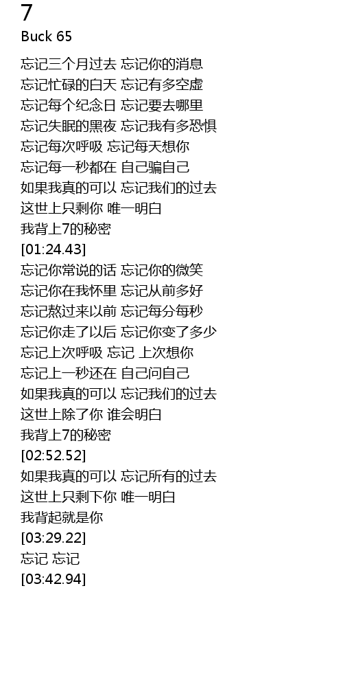 | [00:34.64] | 忘记每次呼吸 忘记每天想你 |