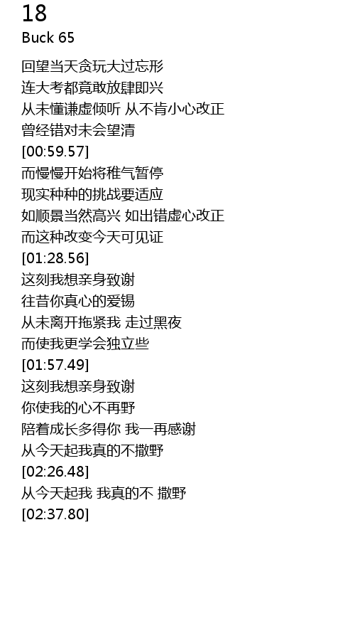 | [02:20.70] | 从今天起我真的不撒野 |