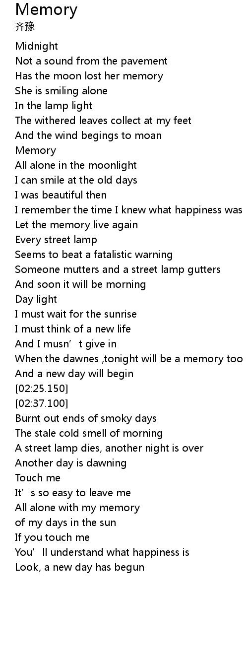 | [00:50.370] | All alone in the moonlight |