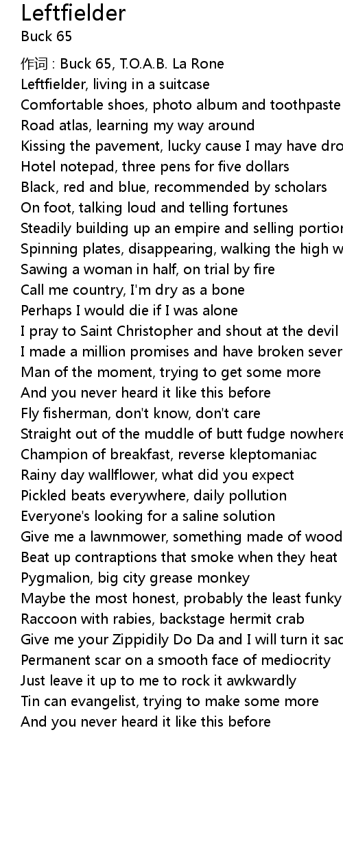 | 作词 : Buck 65, T.O.A.B. La Rone | |