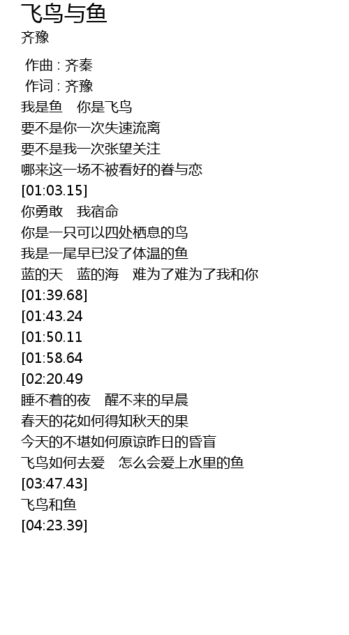| [00:22.75] | 我是鱼 你是飞鸟 |