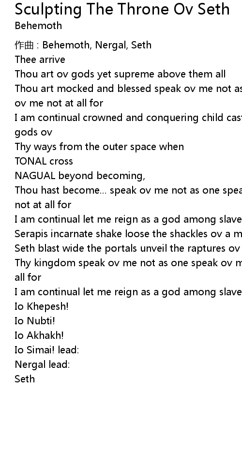 | zuò qǔ : Behemoth, Nergal, Seth | |