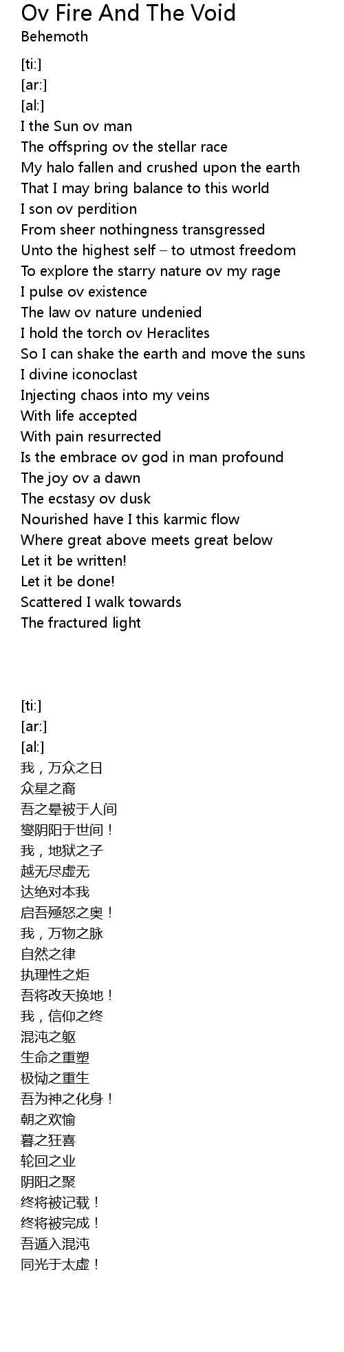 | Song | Ov Fire And The Void |