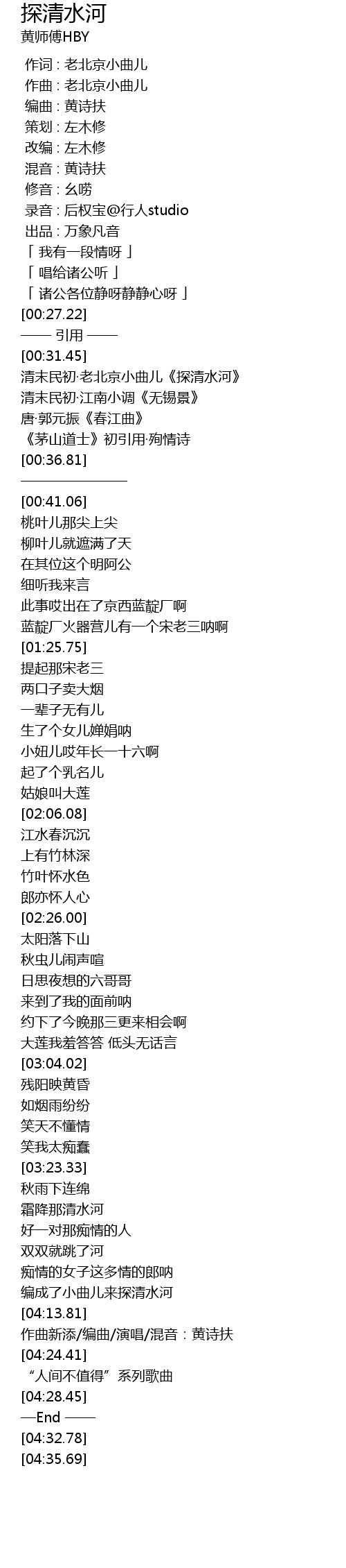 | [00:31.96] | 清末民初·老北京小曲儿《探清水河》 |