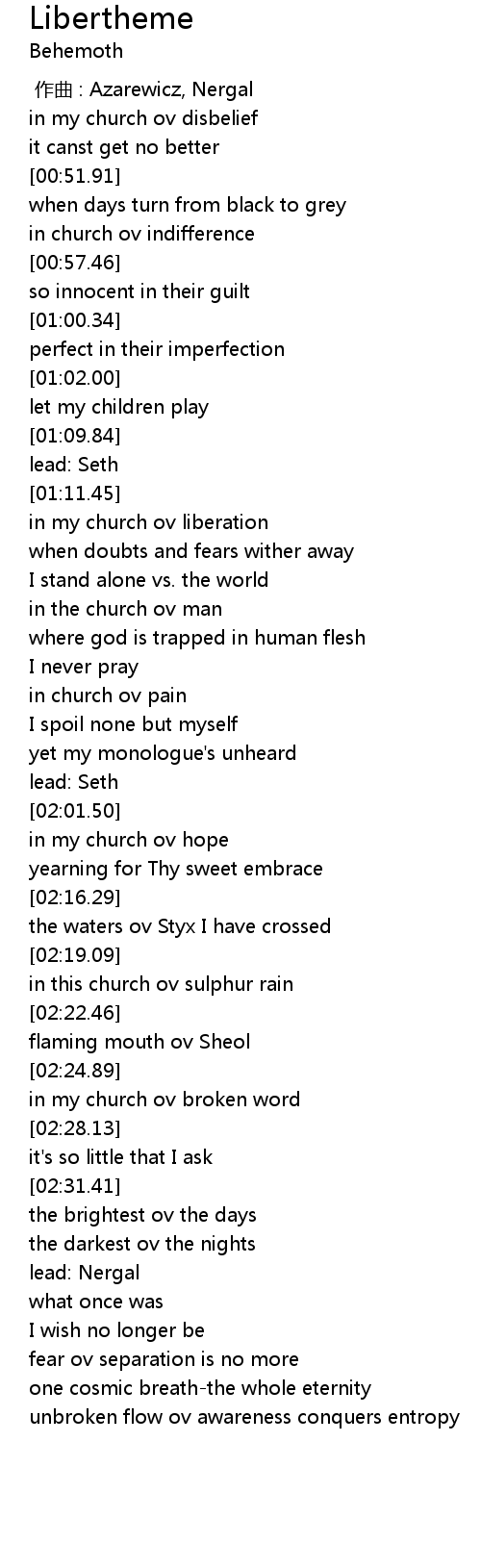 | [00:00.00] | 作曲 : Azarewicz, Nergal |