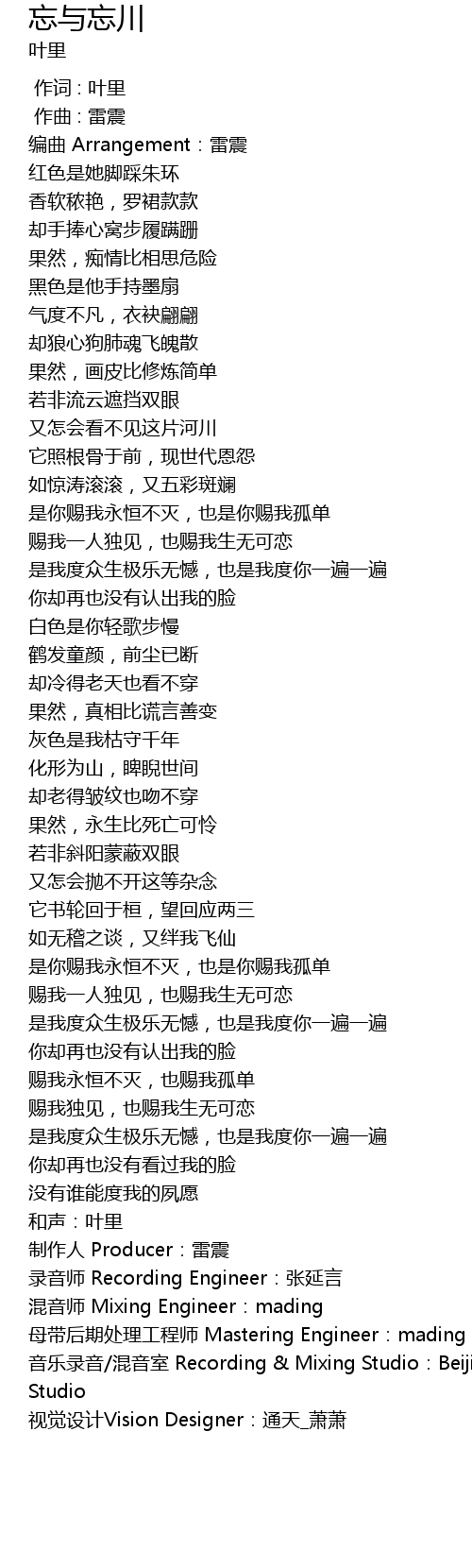 | [04:29.596] | hun yin shi Mixing Engineer: mading |