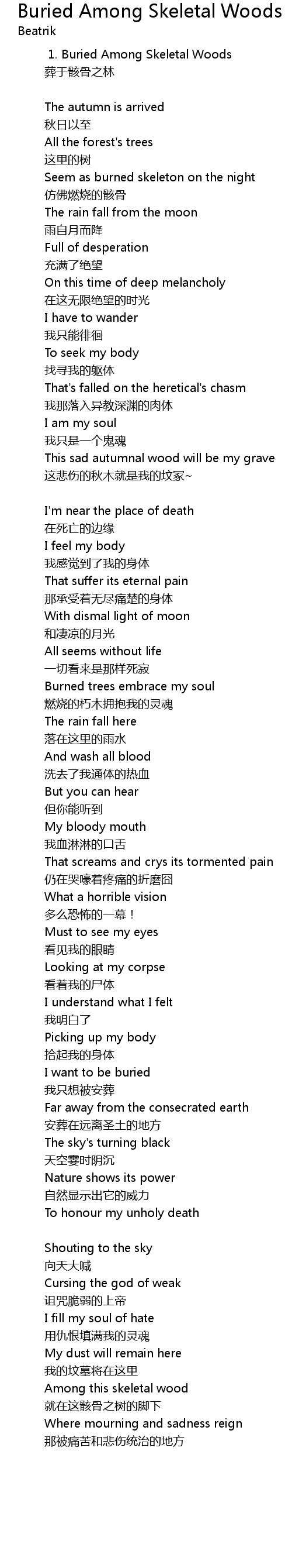 | Song | Buried Among Skeletal Woods |
