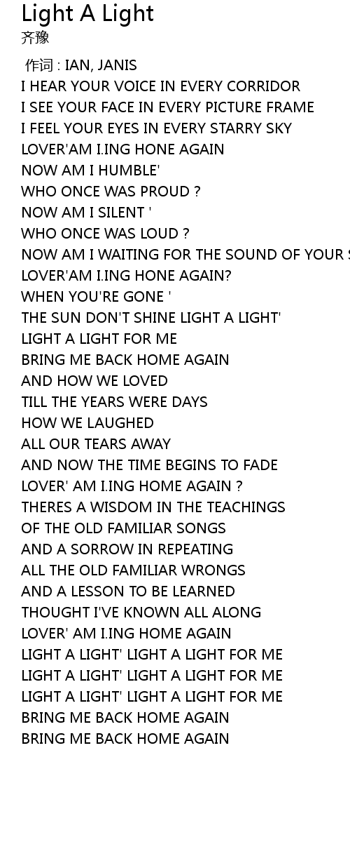 | [02:00.920] | LIGHT A LIGHT' LIGHT A LIGHT FOR ME |