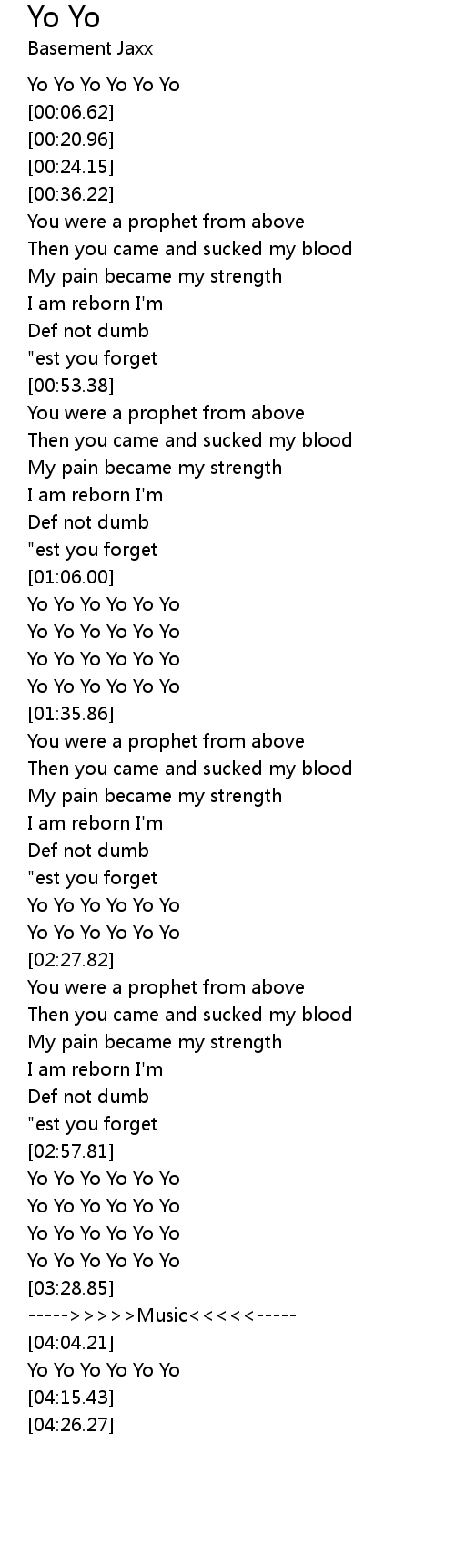 Yo Yo Yo Yo Yo Yo |
