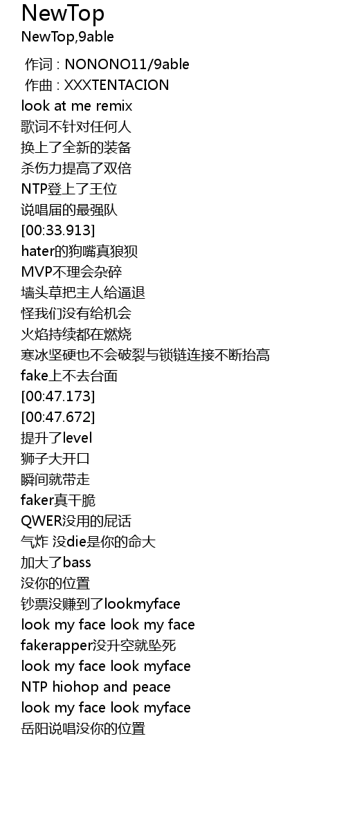 | [01:01.923] | look my face look myface |