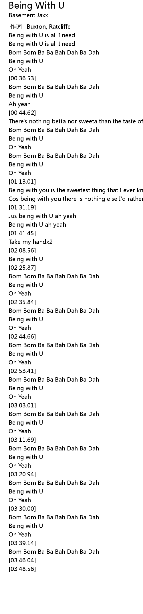 | [01:36.99] | Being with U ah yeah |