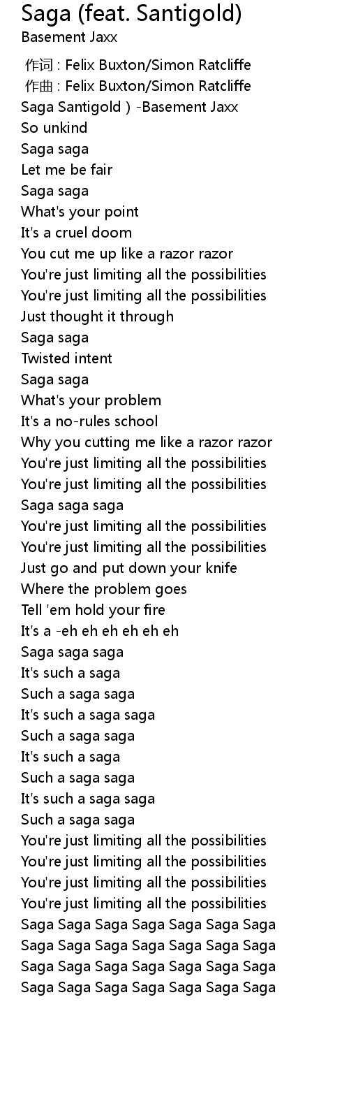 | [00:00.261] | Saga Santigold Basement Jaxx |