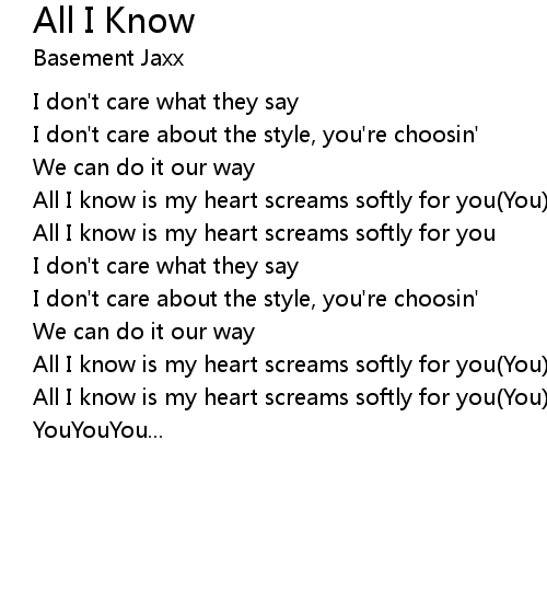 | All I know is my heart screams softly for you(You)(You)(You)(You)(You)(You) | |
