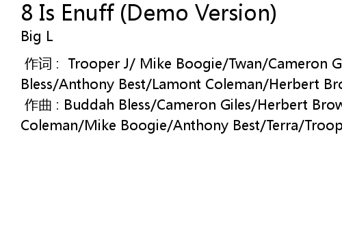 | [00:00.000] | 作曲 : Buddah Bless/Cameron Giles/Herbert Brown/Lamont Coleman/Mike Boogie/Anthony Best/Terra/Trooper J/Twan |