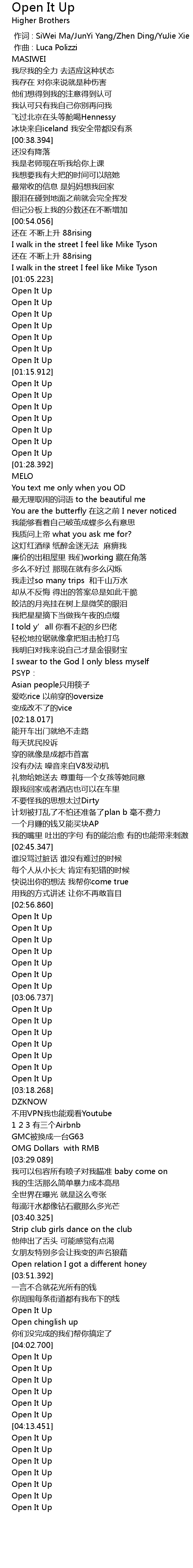 | [03:00.615] | Open It Up |