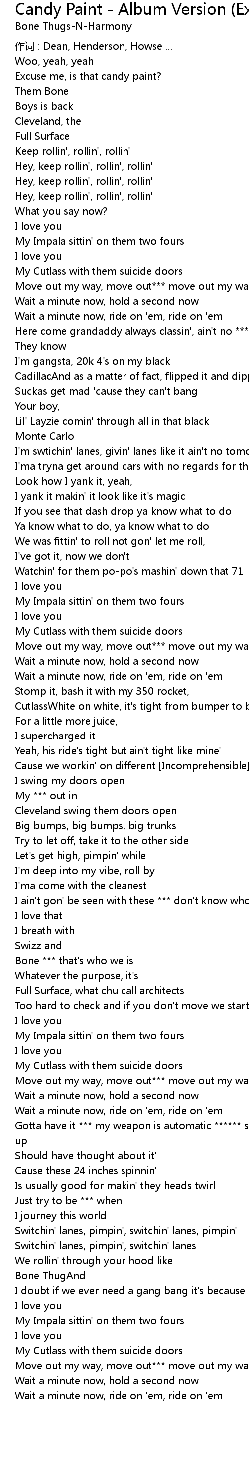 | Switchin' lanes, pimpin', switchin' lanes | |