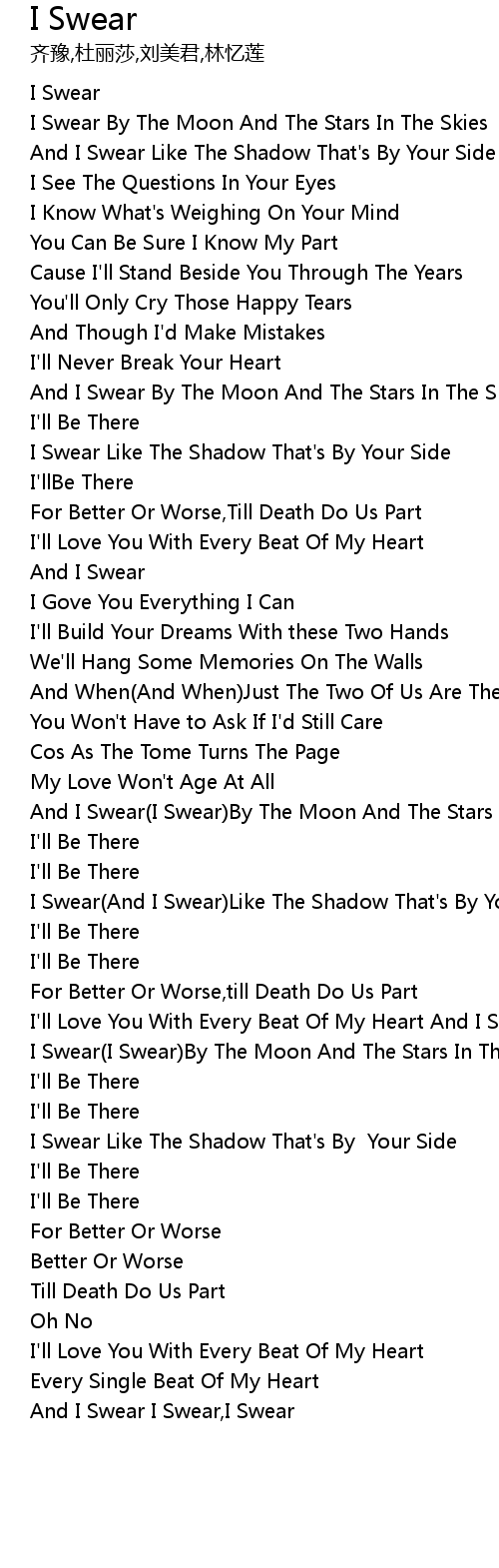 | [02:28.46] | And I Swear(I Swear)By The Moon And The Stars In The Skies |