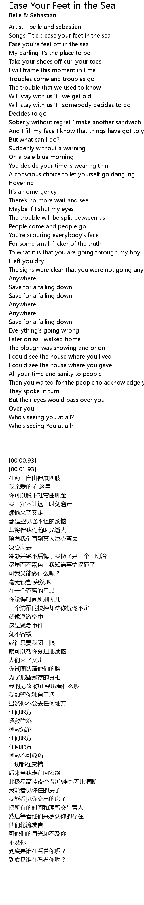 | [00:01.93] | Songs Title: ease your feet in the sea |