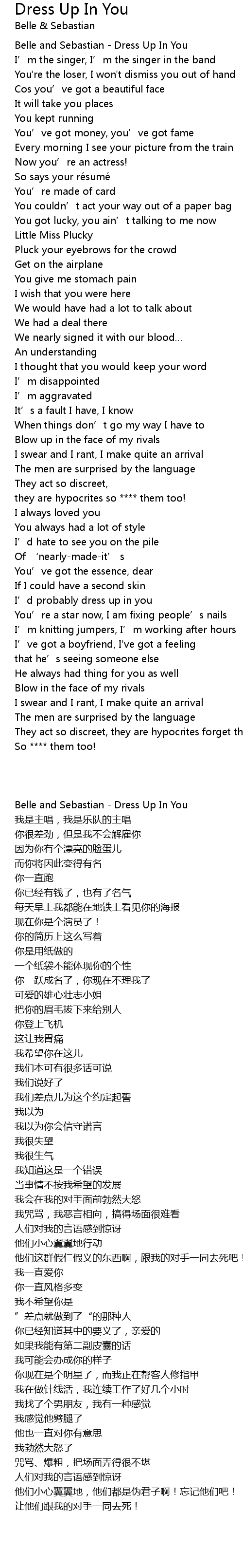 | [00:00.00] | Belle and Sebastian - Dress Up In You |
