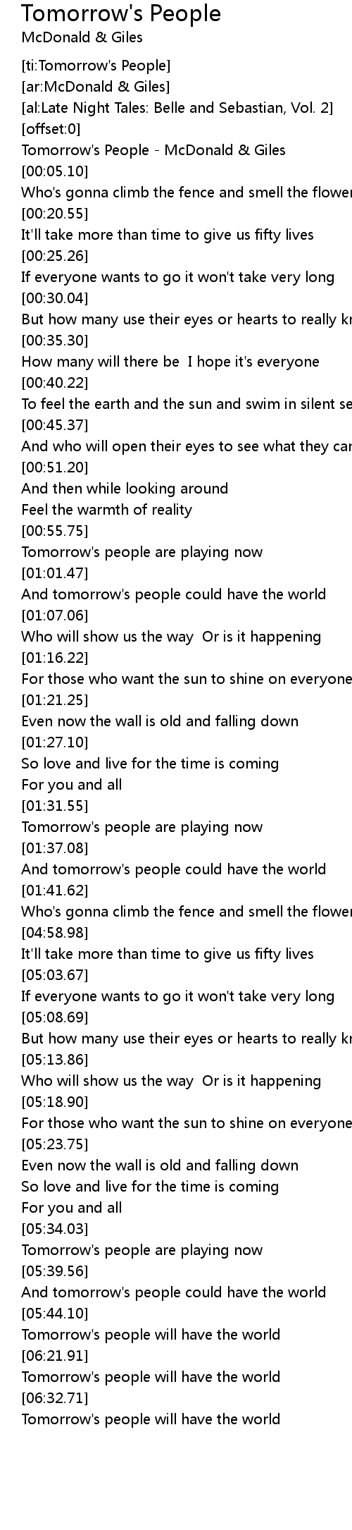 [ti:Tomorrow's People] |