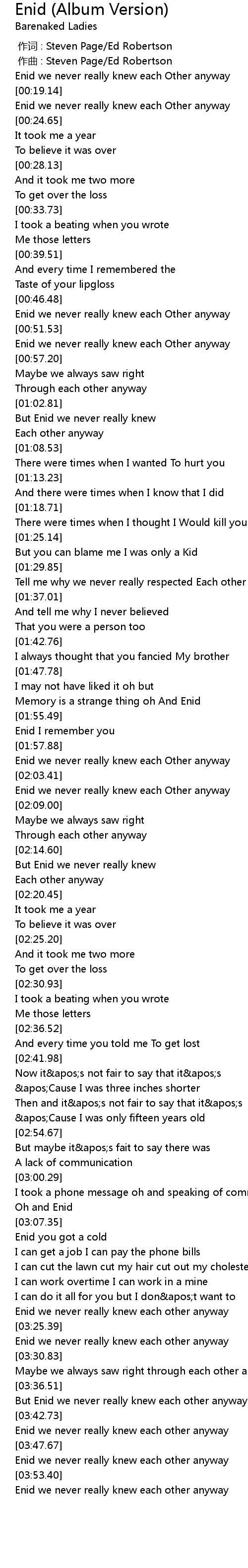 | [03:54.62] | Enid we never really knew each other anyway |
