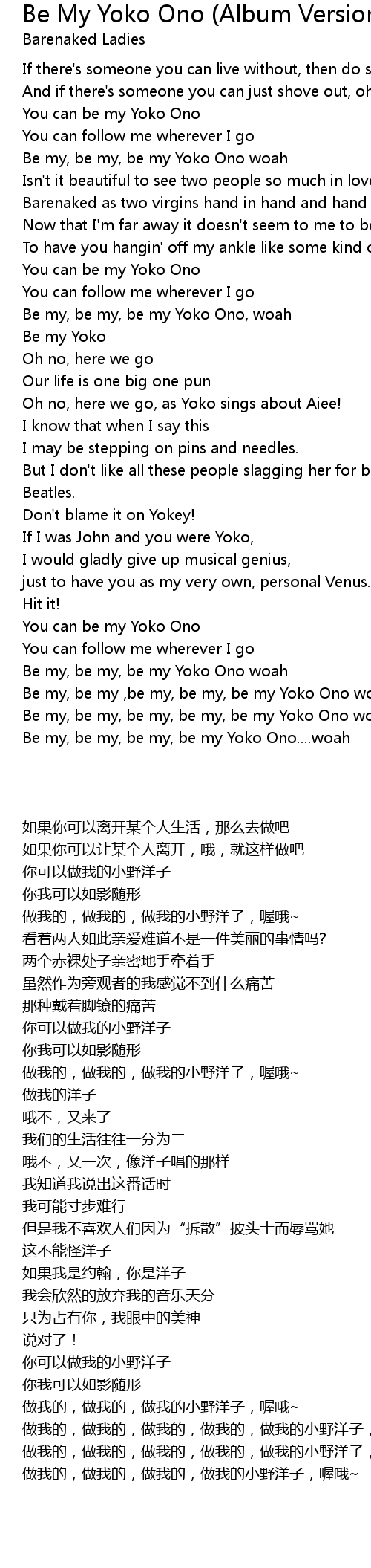 Be my, be my, be my, be my Yoko Ono....woah |