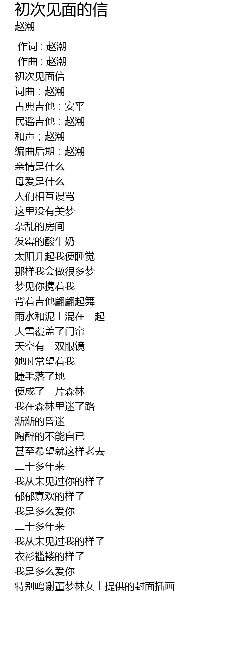 | [00:04.241] | chū cì jiàn miàn xìn |