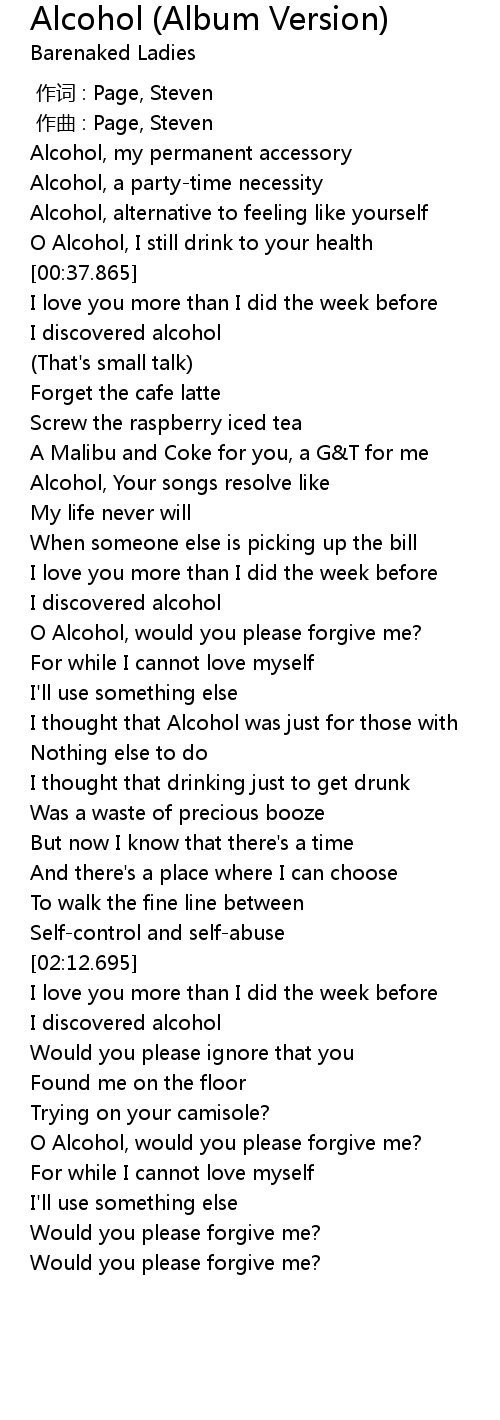 | [02:59.361] | O Alcohol, would you please forgive me? |