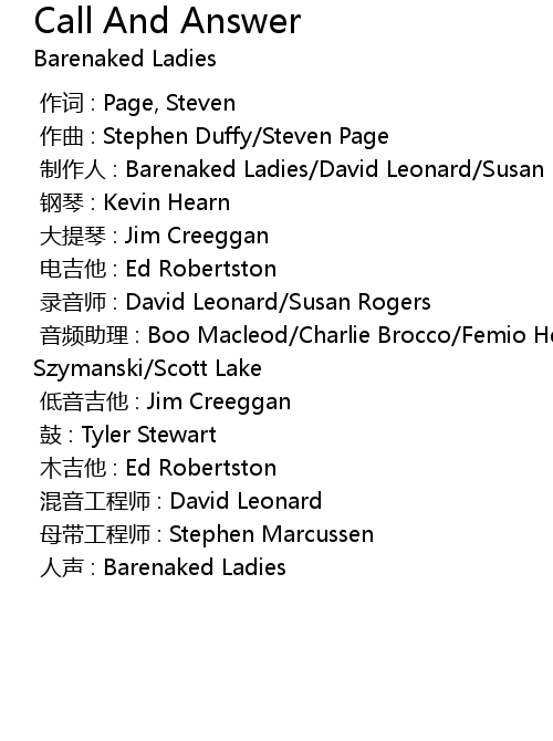| [00:00.000] | 制作人 : Barenaked Ladies/David Leonard/Susan Rogers |