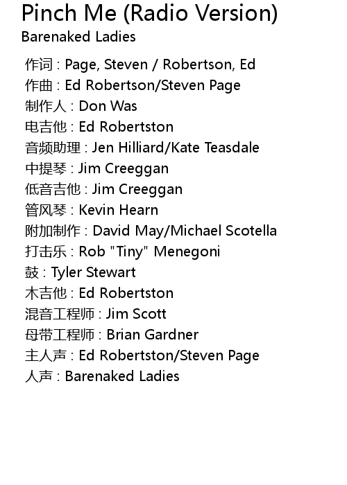 | [00:00.000] | 人声 : Barenaked Ladies |