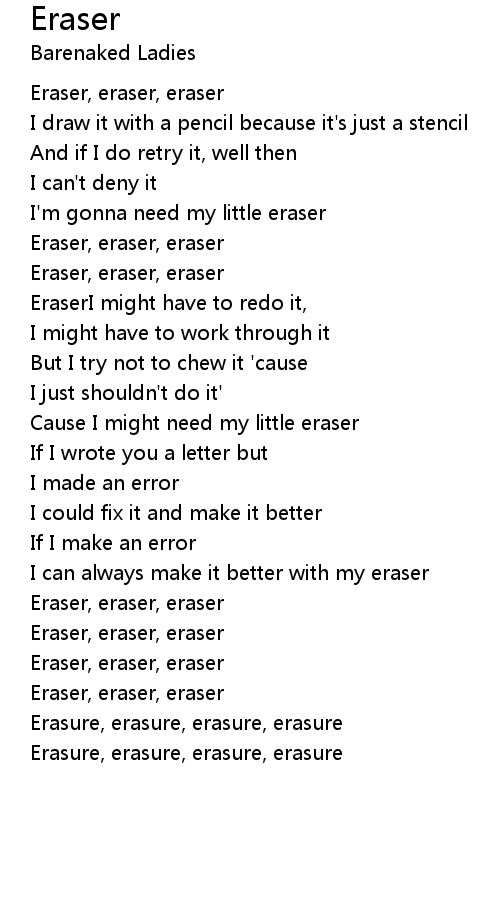 I'm gonna need my little eraser |