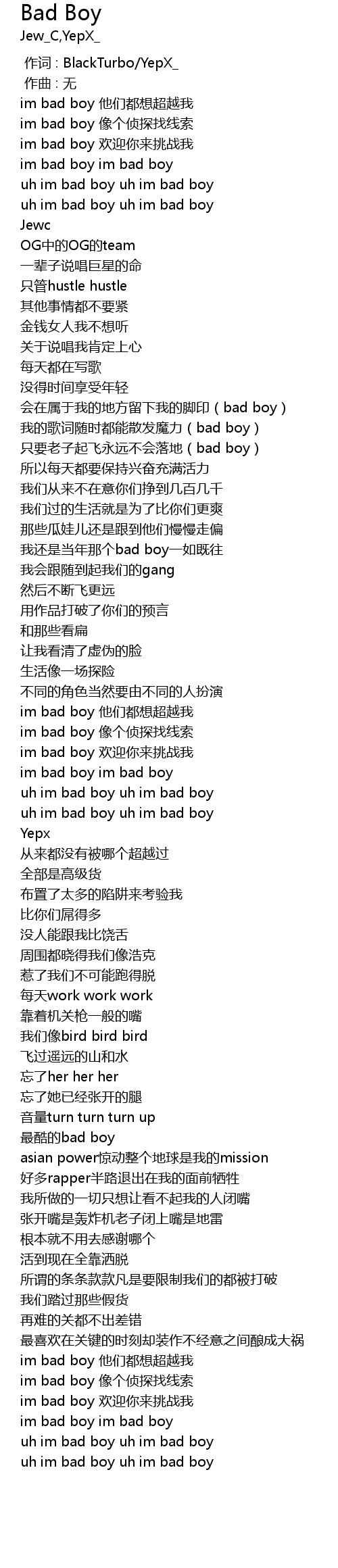| [01:17.427] | uh im bad boy uh im bad boy |