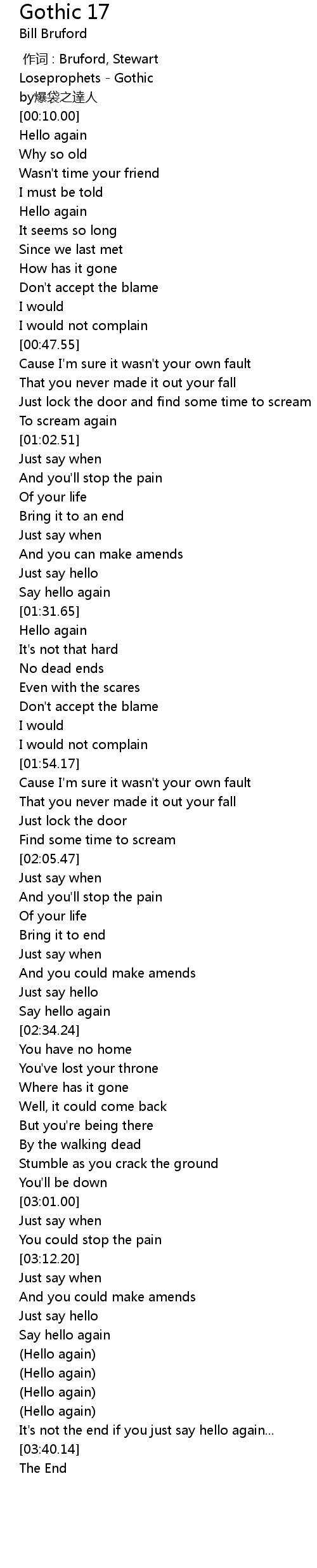 | [03:21.78] | Say hello again |