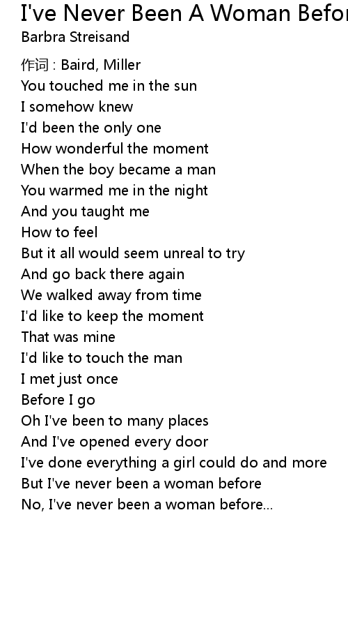 | But I' ve never been a woman before | |