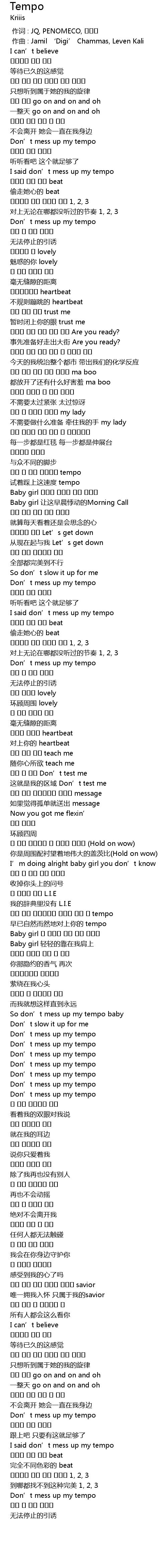 | [00:16.94] | Don’t mess up my tempo |