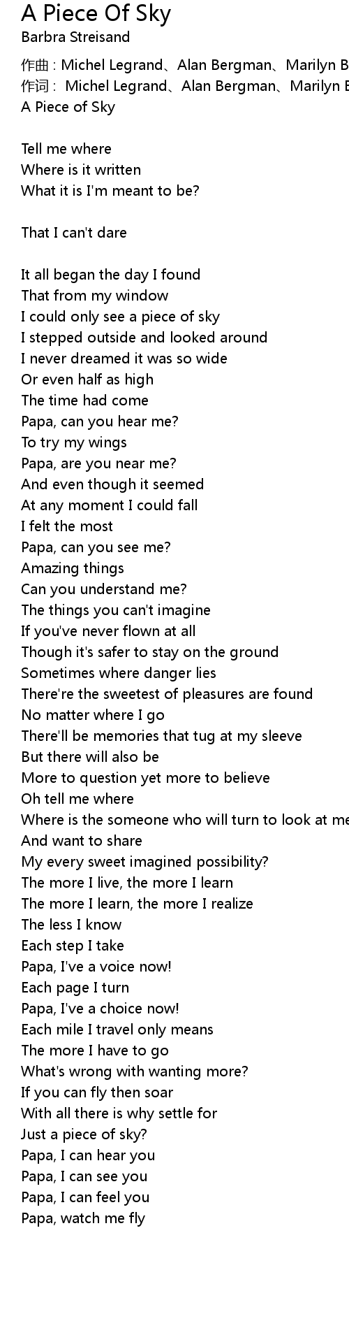 | 作词 : Michel Legrand、Alan Bergman、Marilyn Bergman | |