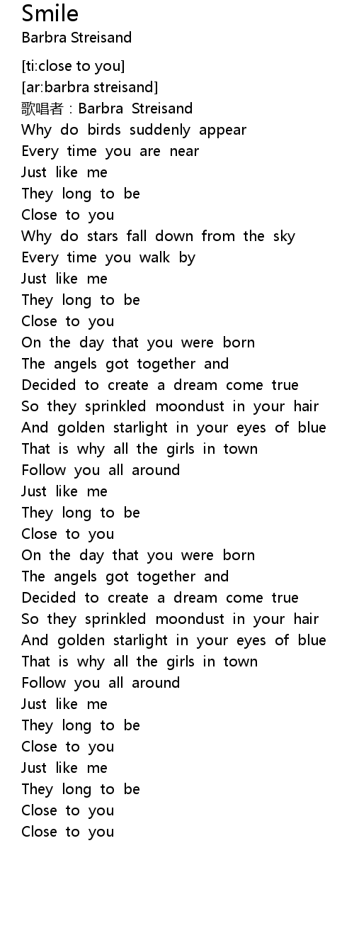 | [00:34.94] | Close to you |