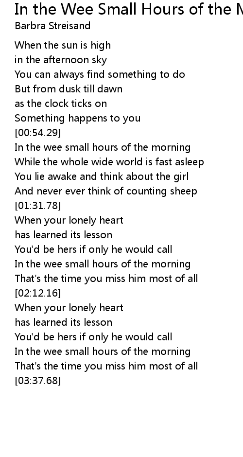 In the Wee Small Hours of the Morning (Orchestra Version) - Orchestra Version Lyrics