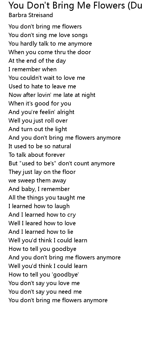 And you don't bring me flowers anymore |