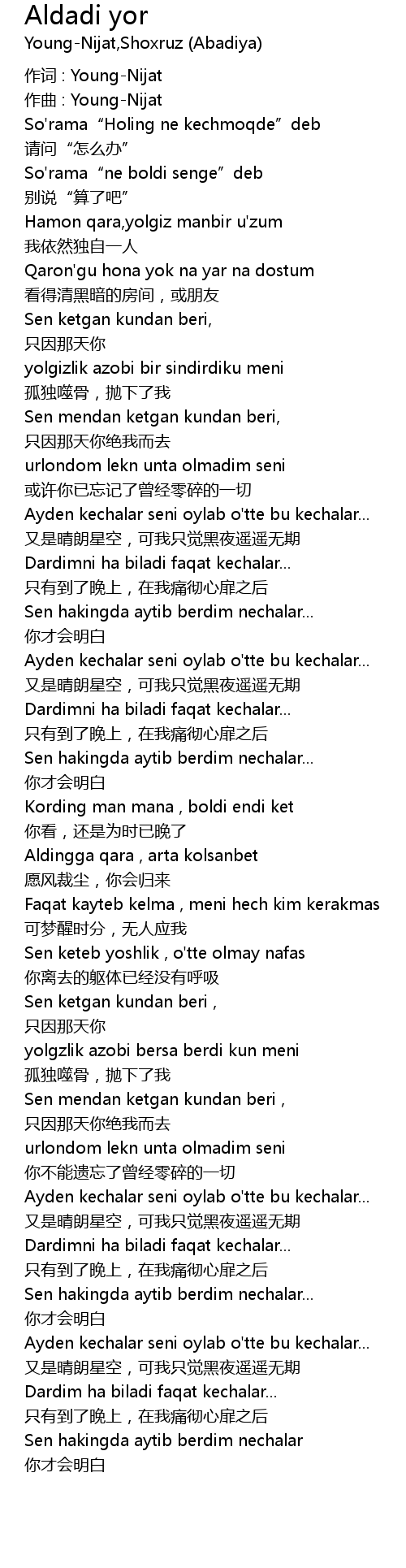 | Sen keteb yoshlik , o' tte olmay nafas | |