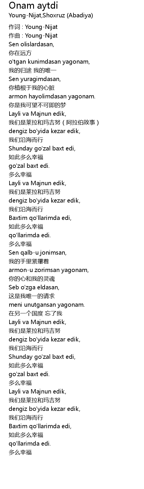 | 作词 : Young-Nijat | |