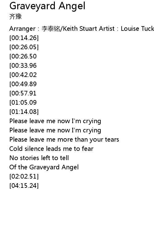 | [03:49.01][01:05.09] | Like a Graveyard A ngel.... |