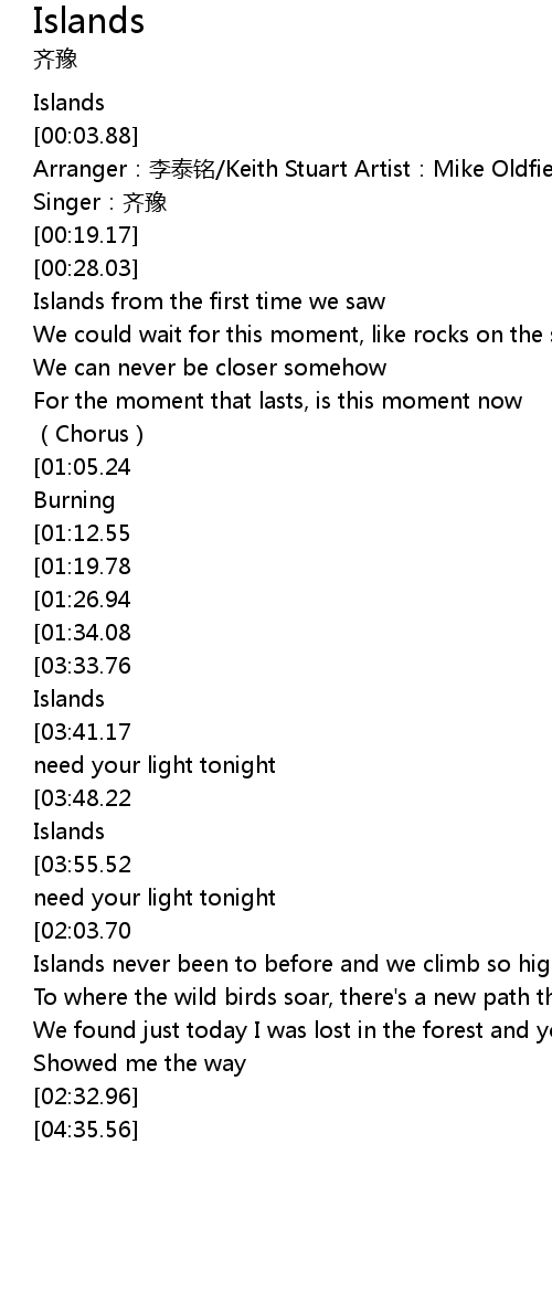 | [04:17.31][03:48.22][03:19.12][01:48.72] | We are Islands but never too far, we are Islands |