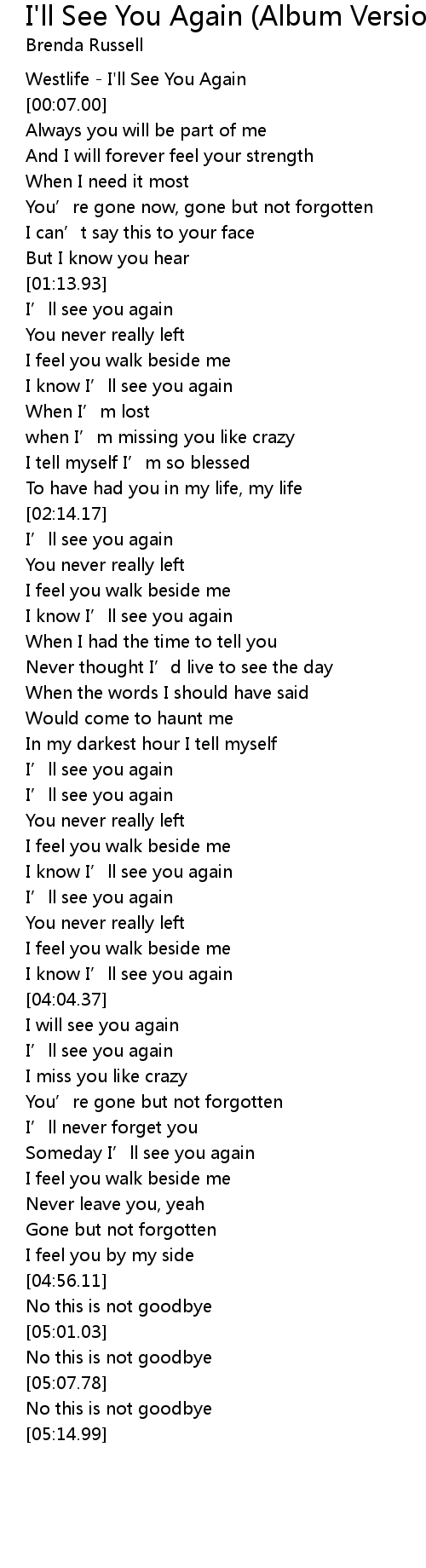 | [00:49.13] | You' re gone now, gone but not forgotten |