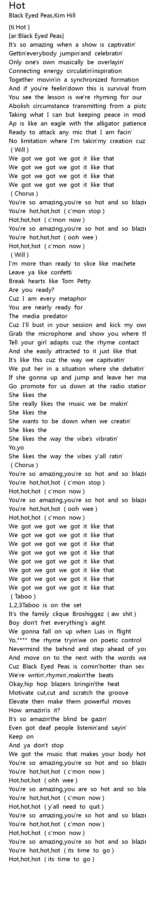 | [02:46.868] | Cuz Black Eyed Peas is comin' hotter than sex |